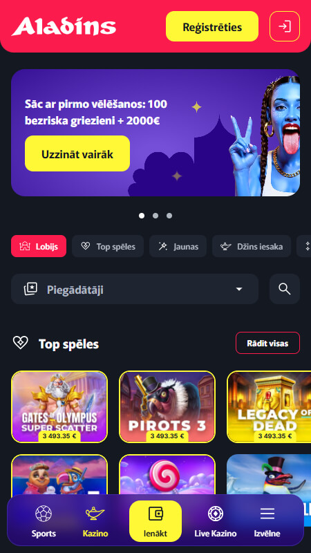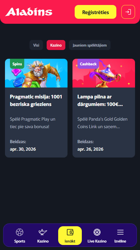 Aladins ir viens no retajiem kazino, kas pilnībā orientēts uz Latvijas spēlētāju – ne tikai licences ziņā, bet arī praktiskajā lietošanā. Platforma apvieno vietējo regulējumu, saprotamu interfeisu un maksājumu risinājumus, kas ikdienā jau tiek izmantoti Latvijā.
