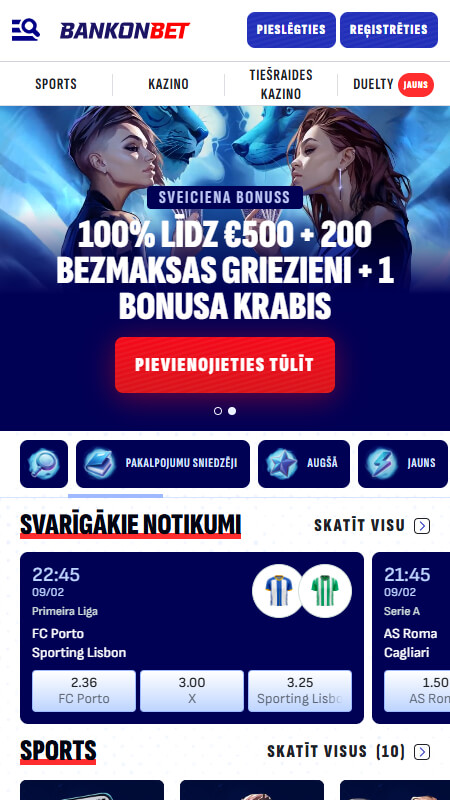 ā ļø SvarÄ«gi: BankonBet nav licencÄts LatvijÄ, tÄpÄc tas vairÄk piemÄrots pieredzÄjuÅ”iem spÄlÄtÄjiem.