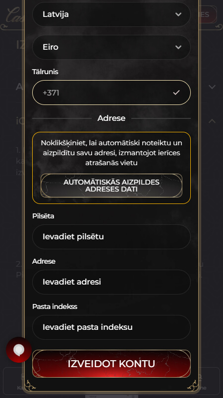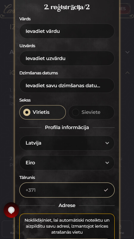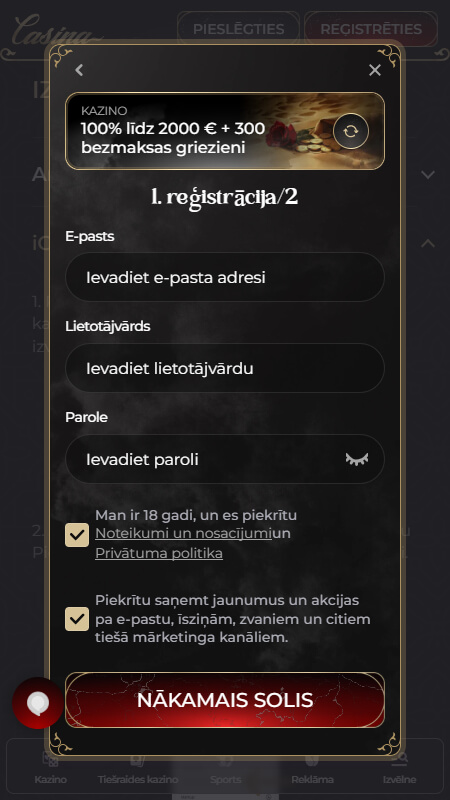 Lai sÄktu reÄ£istrÄciju, jÄatver Casina kazino mÄjaslapa un jÄnoklikŔķina uz pogas āRegisterā.