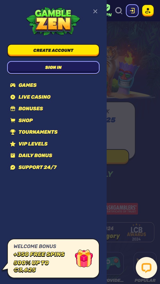 GambleZen Casino ir jaunÄs paaudzes tieÅ”saistes kazino, kas uzreiz piesaista ar iespaidÄ«gi dÄsniem bonusiem. Pieejams Ä«paÅ”s piedÄvÄjums ā 250% bonuss lÄ«dz pat 2000 ⬠+ 200 bezmaksas griezieni. SavukÄrt jaunajiem spÄlÄtÄjiem kopumÄ tiek dota iespÄja tikt pie vÄl iespaidÄ«gÄka starta komplekta: lÄ«dz pat 500% bonusa (maksimums 3625 ā¬) un 350 free spiniem. Kazino atbalsta dažÄdas iemaksu metodes, nodroÅ”ina Ätras izmaksas un ļoti vienkÄrÅ”u pieslÄgÅ”anos spÄlÄm, tÄpÄc visa pieredze ir maksimÄli Ärta.