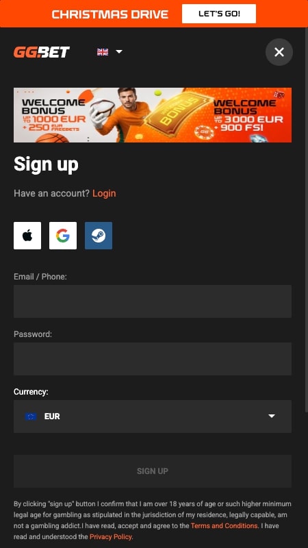 ApmeklÄ GGbet mÄjaslapuĀ un nospied poguĀ Sign UpĀ (ReÄ£istrÄties), kas atrodas lapas augÅ”ÄjÄ stÅ«rÄ«.