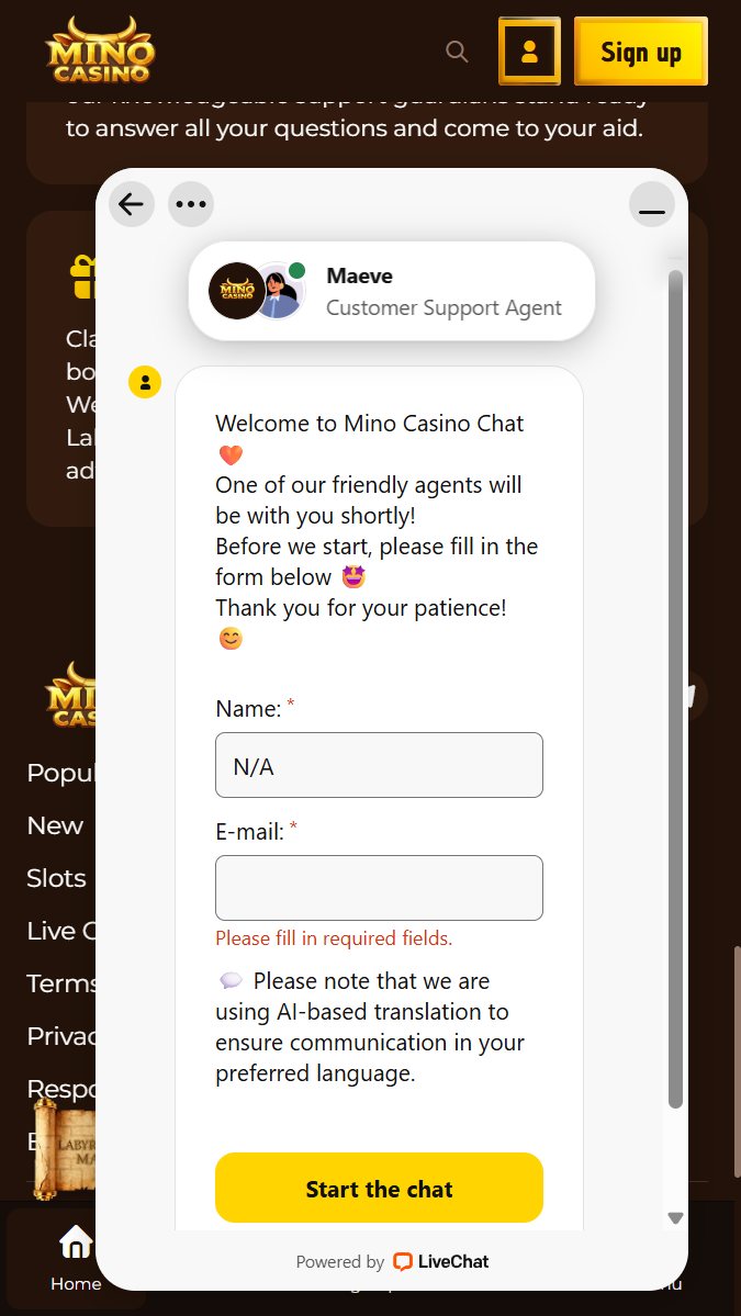 Mino kazino piedÄvÄ klientu atbalstu, izmantojot tieÅ”saistes saziÅas kanÄlus. PlatformÄ pieejama palÄ«dzÄ«bas sadaļa ar biežÄk uzdotajiem jautÄjumiem (FAQ), kÄ arÄ« iespÄja sazinÄties ar atbalsta komandu individuÄli.
