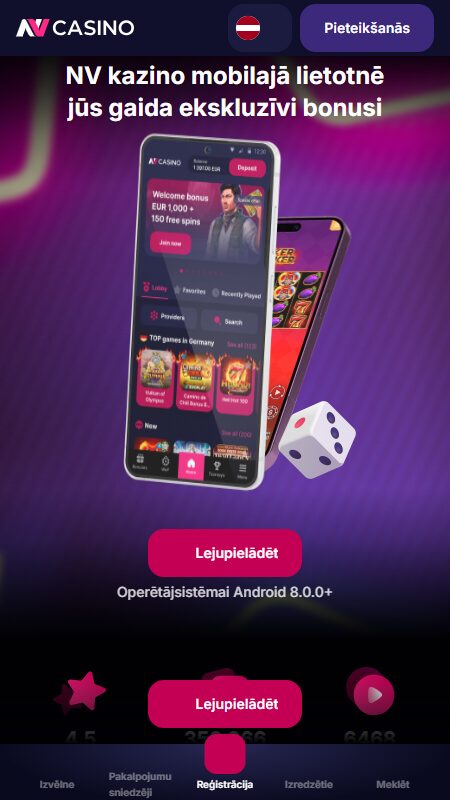 Jā, NV Casino piedāvā oficiālu aplikāciju iOS un Android ierīcēm. Papildus pieejama arī pilnībā optimizēta mobilā web versija pārlūkprogrammā.
