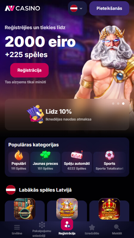 NV Casino ir starptautisks online kazino ar vairāk nekā 10 000 spēļu piedāvājumu, integrētu sporta totalizatoru un attīstītu bonusu sistēmu. Platforma pozicionējas kā universāls azartspēļu risinājums, kas apvieno kazino, live kazino, e-sportu un kriptovalūtu maksājumus vienā vietā. Welcome bonuss līdz 2 000 € + 225 bezmaksas griezieni ir strukturēts vairākos posmos ar skaidri definētām apgrozījuma prasībām.