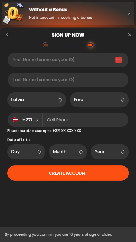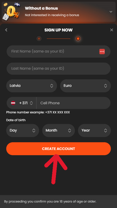 Aizpildi nepiecieÅ”amo informÄciju Ievadi savus personas datus ā vÄrdu, e-pastu, valsti, paroli u.c. Lauki, kas atzÄ«mÄti ar zvaigznÄ«ti (*), ir obligÄti. Ievadi tos precÄ«zi, jo tie bÅ«s nepiecieÅ”ami konta droŔībai un verifikÄcijai.