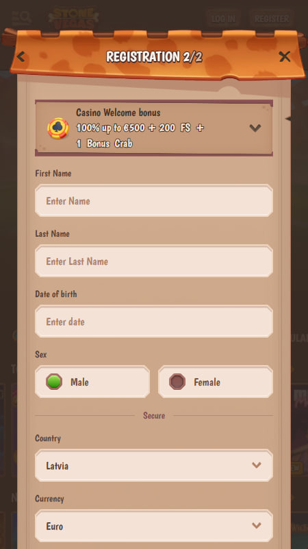 ReÄ£istrÄties ir Ärti, Ätri un pietiekami viegli, lai jau pÄc brīža sÄktu spÄlÄt kazino spÄles.