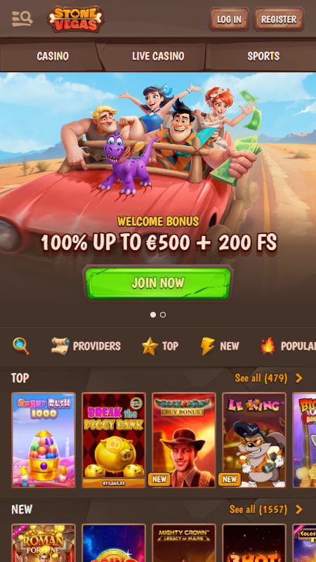 StoneVegas ir viens no tiem kazino, kas uzreiz rada iespaidu, ka viss ir salikts pa plauktiÅiem. NekÄdu lieku efektu, nekÄda haosa – vienkÄrÅ”i skaidra struktÅ«ra un daudz spÄļu, no kurÄm izvÄlÄties. PatÄ«kami, ka viss darbojas raiti gan datorÄ, gan telefonÄ, un mobilÄ versija tieÅ”Äm ir Ärta ikdienas lietoÅ”anai.