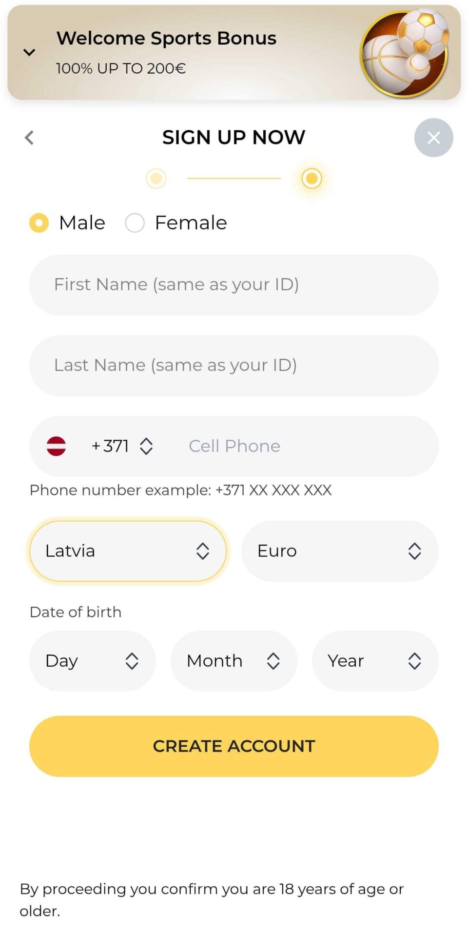ReÄ£istrÄcija notiek manuÄli, ievadot e-pastu, lietotÄjvÄrdu un paroli. Lai izmaksÄtu laimestus, nepiecieÅ”ama identitÄtes pÄrbaude (KYC). Parasti tiek pieprasÄ«ts personu apliecinoÅ”s dokuments un dzÄ«vesvietas apliecinÄjums.