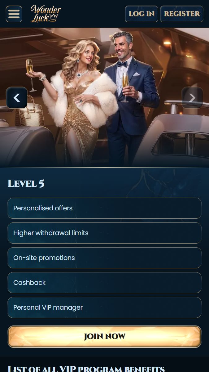 WonderLuck piedÄvÄ 5 lÄ«meÅu VIP sistÄmu, kur lietotÄja statuss ietekmÄ maksimÄlos izmaksu limitus. Jo augstÄks VIP lÄ«menis, jo lielÄkas pieejamÄs izmaksu summas dienÄ un mÄnesÄ«.