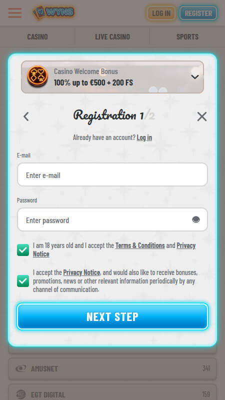 Wyns kazino reÄ£istrÄcija