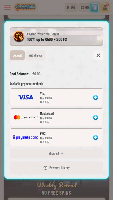 MinimÄlais depozÄ«ts Wyns kazino ir ā¬10, bet kriptovalÅ«tÄm tas parasti ir ā¬10-ā¬30 ekvivalents atkarÄ«bÄ no valÅ«tas.