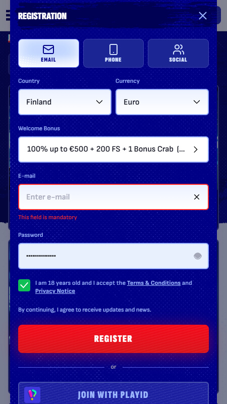 Конкурентный приветственный бонус до €500 + до 200 фриспинов