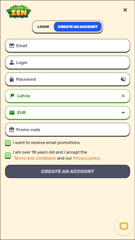 💡 Как проходит регистрация в GambleZen Casino?