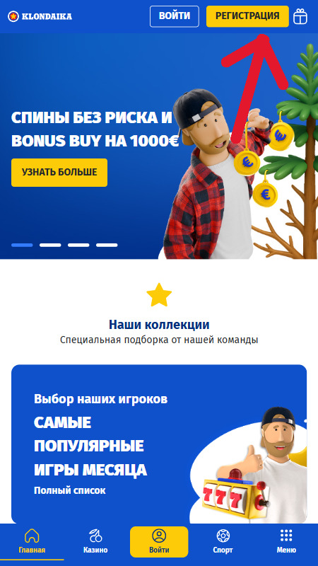 Начало регистрации: Начните с жёлтой кнопки “Регистрация”, расположенной в правом верхнем углу главной страницы Klondaika.