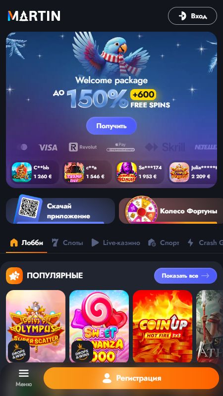 Martin Casino — это современное онлайн-казино, где совмещены привычные азартные игры и спортивные ставки. Сайт сделан удобно: понятный дизайн, быстрая навигация, легко переключаться между слотами и тотализатором.