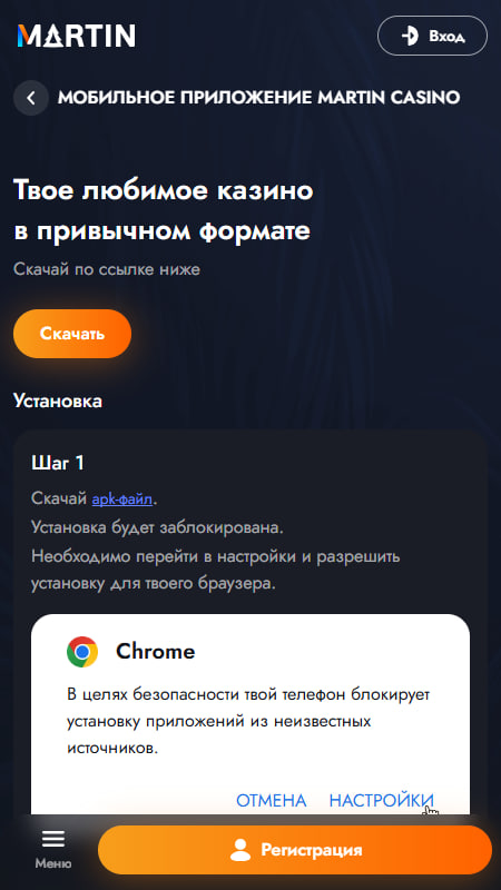 Martin Casino предлагает отдельное мобильное приложение для Android и iOS — оно даёт полноценный доступ ко всем функциям казино прямо с телефона или планшета.