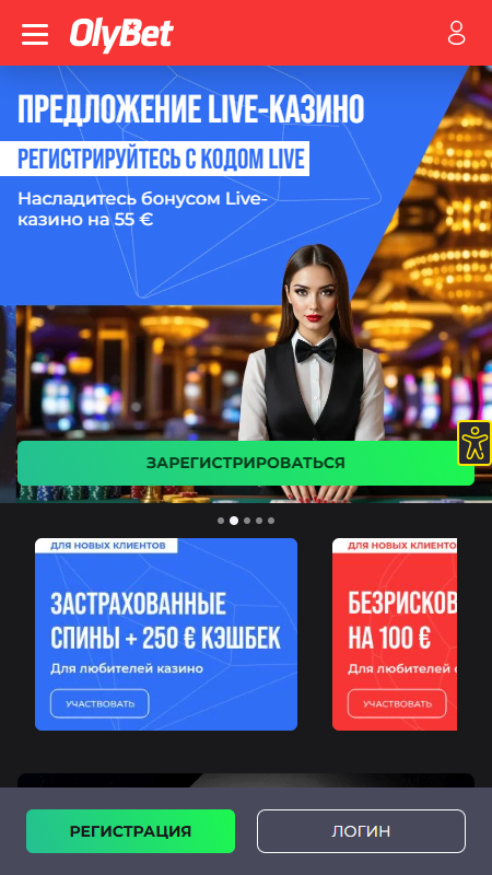 Сайт Olybet производит положительное впечатление своим современным и удобным дизайном. Он выполнен в динамичном и профессиональном стиле с сочетанием красного, белого и чёрного цветов. Навигация проста, а мобильная версия безупречно работает как на Android, так и на iOS устройствах. Процесс регистрации быстрый и простой.