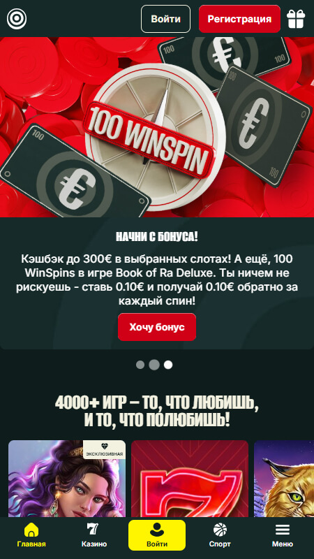 Приветственный бонус в казино Optibet разработан, чтобы обеспечить новым игрокам успешный старт. Внесите депозит в размере 20€ и сразу же получите 100 WinSpins в игре Book of Ra. Получите 25% страховки (до 100€) в течение первых трёх дней в казино Optibet. WinSpins позволяют играть на слотах, не рискуя собственными средствами. Вы делаете вращение со ставкой 0,10€ или больше и сразу получаете 0,10€ кэшбэка. Объединив бесплатные вращения и дополнительные преимущества, этот приветственный пакет призван улучшить ваш первоначальный опыт в казино.