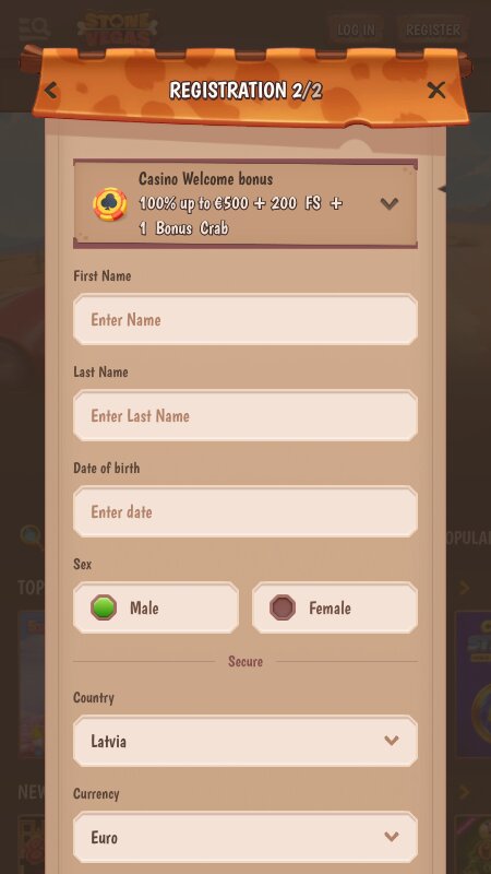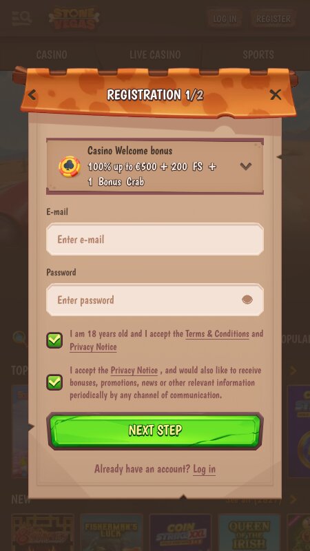 Регистрация в StoneVegas — пошаговая инструкция