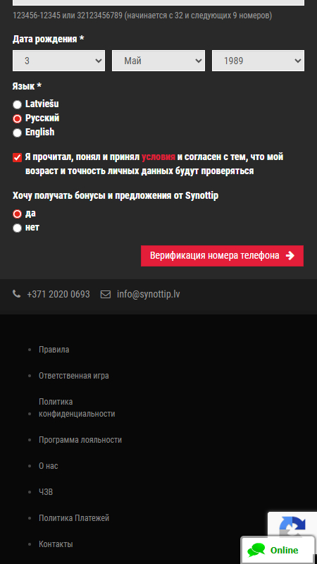 Email – info@Synottip.lv – ответ в течение нескольких часов