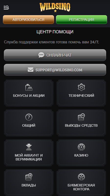 Служба поддержки и контакты Wildsino