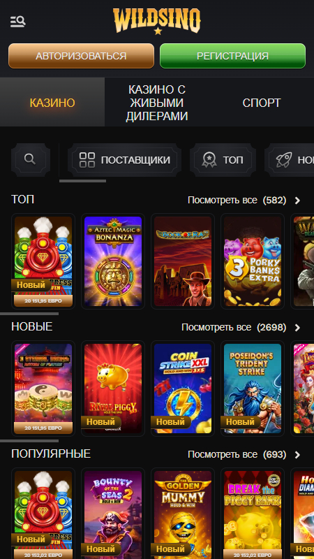 Wildsino предлагает особенно широкий выбор казино-игр, ориентированный на любителей игровых автоматов и поклонников live-казино. На платформе доступны тысячи игр, и каталог регулярно пополняется новыми релизами от признанных разработчиков.