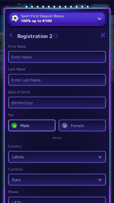 Новые пользователи могут получить 100% бонус на первый депозит до €100 для ставок на спорт. Максимальная сумма бонуса и условия могут отличаться в зависимости от страны проживания игрока.