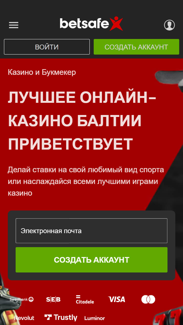 На «Бетсейф» представлен хороший ассортимент локальных способов пополнения депозита: Swedbank, SEB, Visa, Mastercard, Luminor, Trustly, Revolut. Это значит, что на платформе быстрые депозиты — почти мгновенные. У букмекера нет криптовалют и PayPal. Вероятно, это связано со сложностью проверить данные по транзакциям.