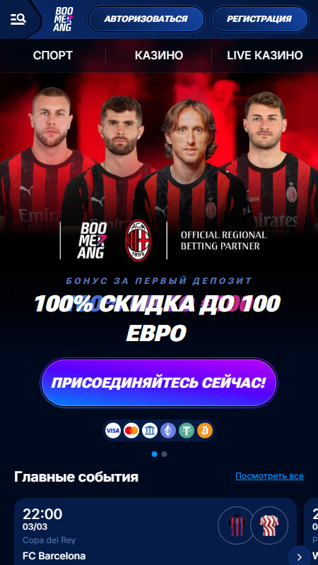 Boomerang Bet поддерживает различные методы оплаты, включая кредитные/дебетовые карты, электронные кошельки и криптовалюты.