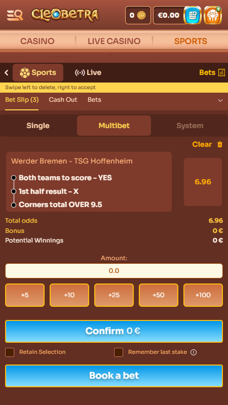 Купон ставки на сайте Cleobetra простой и понятный — одним кликом можно добавить события, посмотреть коэффициенты и потенциальный выигрыш. Доступны три формата: