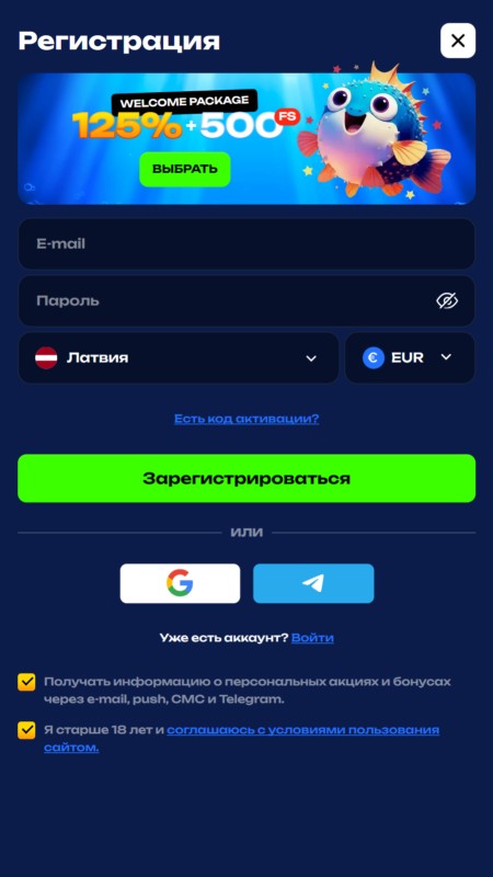 У букмекера Fugu используется стандартная регистрация по e-mail, которая включает несколько последовательных шагов.