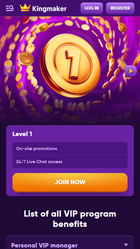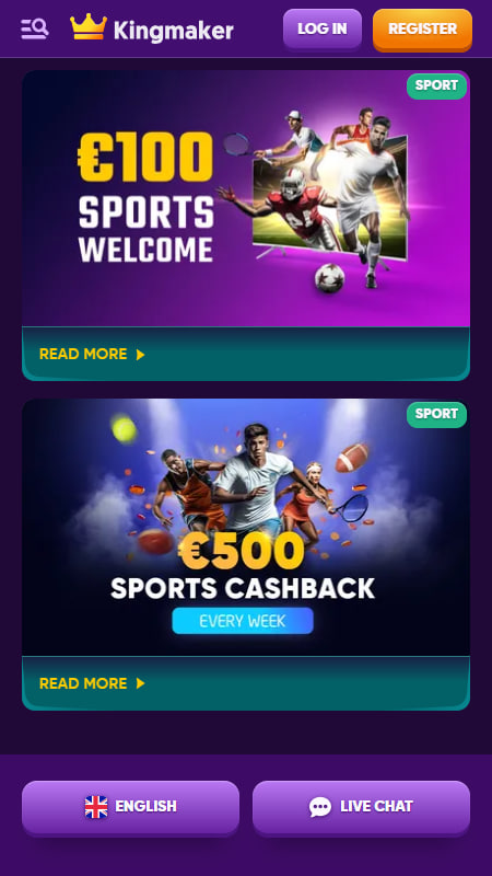 На данный момент у Kingmaker нет отдельного мобильного приложения, но сам сайт полностью адаптирован под смартфоны и планшеты. Платформа автоматически подстраивается под размер экрана, и все ключевые функции — регистрация, ставки, пополнение и вывод средств — работают на мобильных устройствах так же плавно, как и на компьютере.