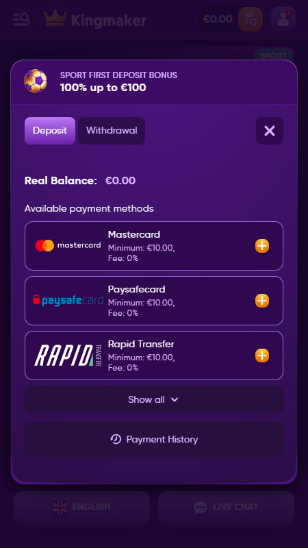 Платёжные методы Kingmaker
