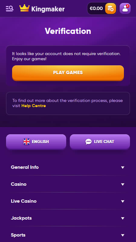 Поддержка Kingmaker работает круглосуточно — связаться с командой можно через онлайн-чат или по электронной почте. Live-чат доступен на английском языке 24/7, и в большинстве случаев ответы приходят в течение нескольких минут. Если вы пишете по e-mail, ждать придётся немного дольше — обычно от 2 до 6 часов, в зависимости от времени суток.