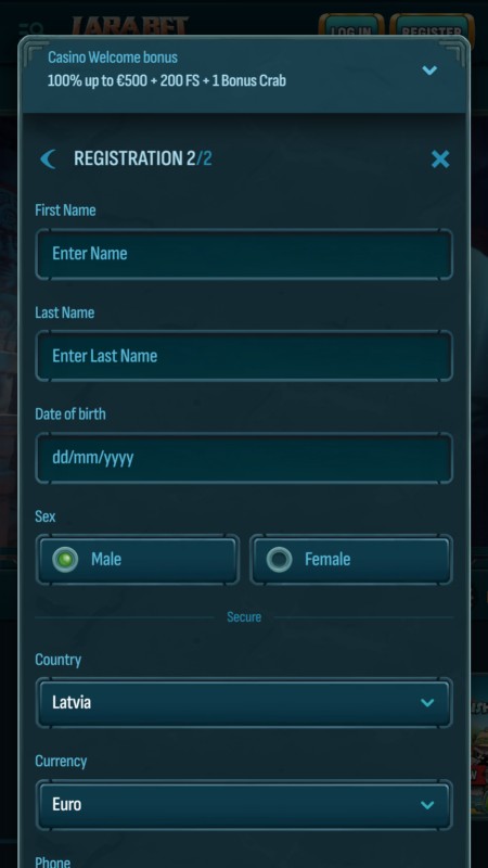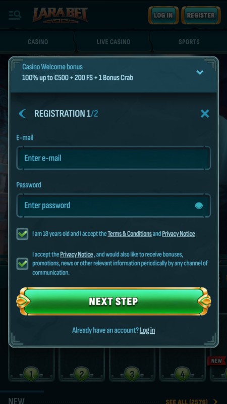 Подтвердите, что вам исполнилось 18 лет и вы принимаете правила и условия Ларабет, после чего завершите регистрацию.