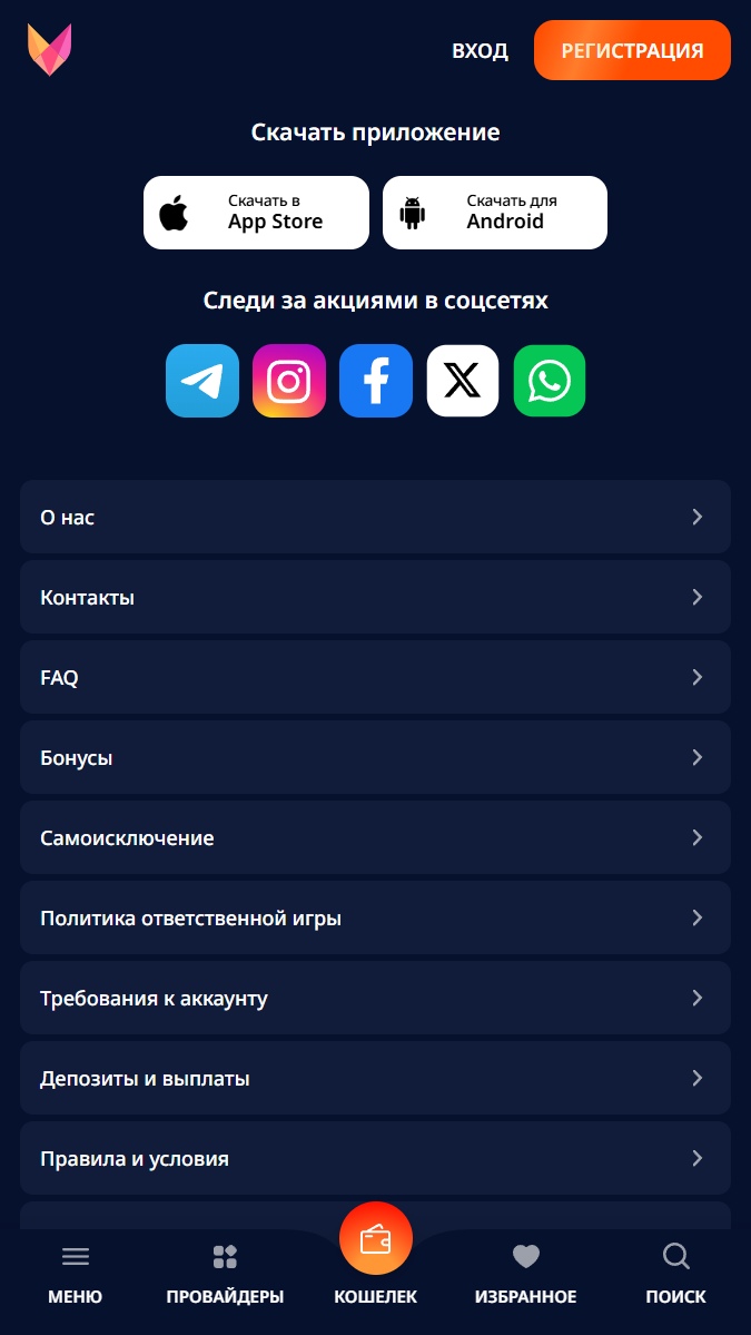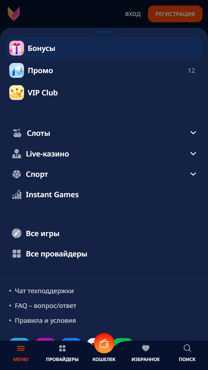 Мобильное приложение Monro предоставляет пользователям полный функционал, аналогичный версии сайта, с удобной адаптацией под мобильные устройства. Игроки могут делать ставки, просматривать лайв-трансляции, участвовать в акциях и пополнять баланс прямо со своего смартфона. Приложение отличается удобным интерфейсом, обеспечивая быстрый доступ ко всем разделам. Скачать приложение можно на официальном сайте букмекера — ссылки для загрузки версий для Android и iOS расположены на нижней панели слева.
