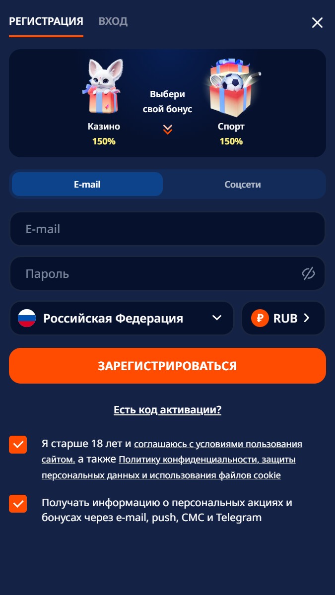 Заполните начальную форму — Введите свой email и пароль, выберите страну проживания и поставьте галочку о согласии с условиями использования. Вы также можете согласиться на получение рекламных сообщений, если хотите получать бонусы и предложения от Monro.