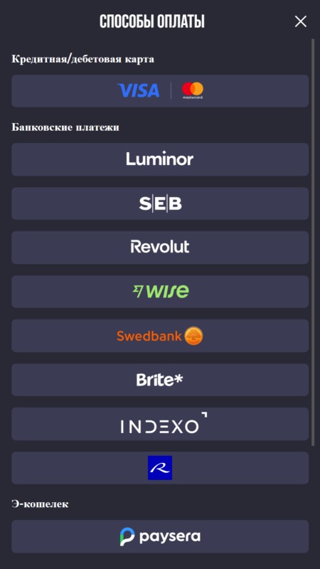 В Латвии OlyBet поддерживает пополнение через Visa и Mastercard, которыми пользуются без преувеличения все, интернет-банкинг Swedbank, SEB, Citadele, Luminor, а также финтех-сервисы Revolut, WISE, Brite, Neopay, PaySera и Skrill. Пополнить депозит можно даже “по старинке” банковским переводом.