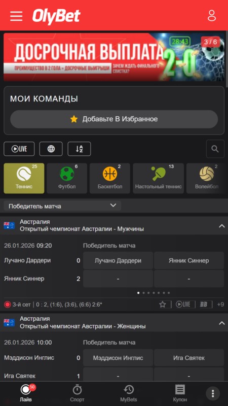 В лайв-разделе OlyBet обновляет коэффициенты в реальном времени. Изменения сразу видны в линии и купоне, а расчет потенциальной выплаты происходит автоматически.