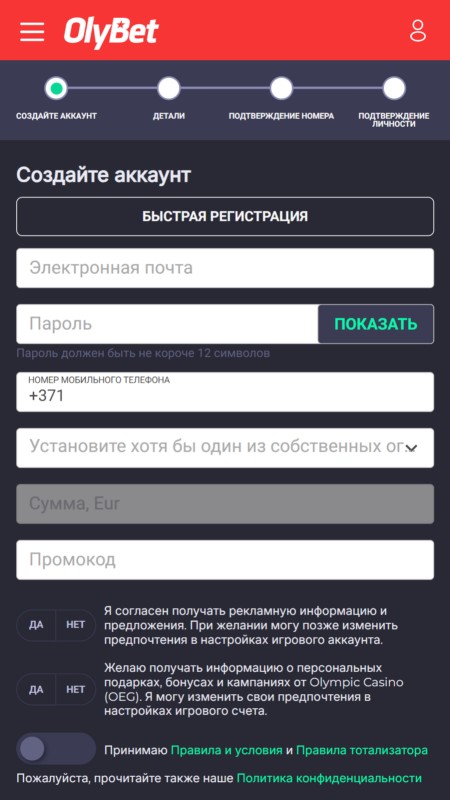 Как зарегистрироваться на Olybet: