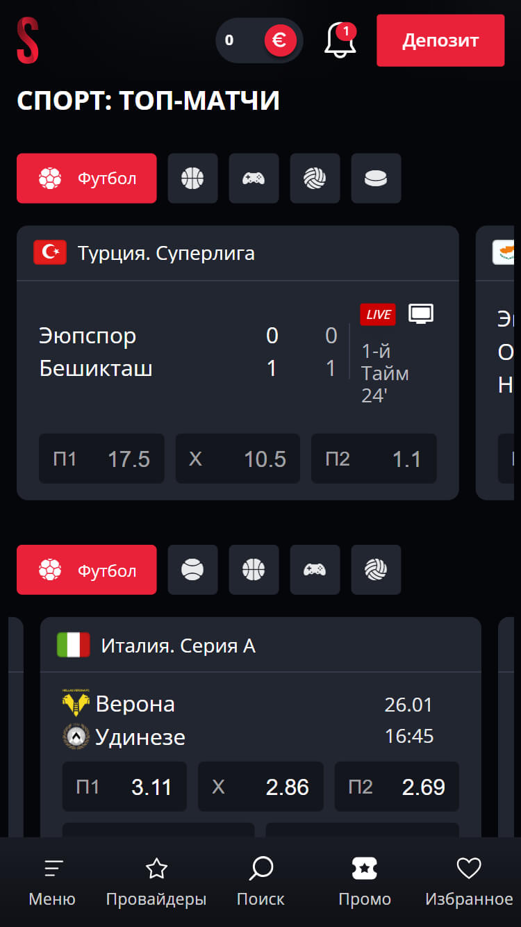 Starda предлагает выбор спортивных событий и рынков для ставок. Пользователи могут смотреть события в реальном времени, если на платформе доступна функция прямой трансляции для выбранного матча.
