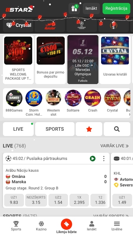 888starz izceļas ar ļoti plaÅ”u sporta likmju piedÄvÄjumu, kur pieejami vairÄk nekÄ 45 sporta veidi un katrai futbola spÄlei pat 500+ tirgi. Live sadaļa ir dinamiska un nodroÅ”ina Ätru likmju pieÅemÅ”anu, kas padara spÄlÄÅ”anu intensÄ«vu un Ärtu.