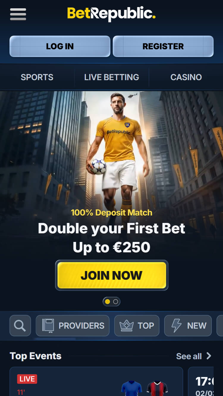 BetRepublic ir starptautiski orientēts totalizators, kas pozicionējas kā universāla platforma ar izteiktu fokusu uz bonusu piedāvājumiem un dinamiskām funkcijām. Tas konkurē segmentā, kur nozīme ir gan konkurētspējīgiem koeficientiem, gan plašām live likmēm, kā arī papildu rīkiem, piemēram, Bet Builder un cashout iespējai. Papildus sporta likmēm pieejama arī kazino sadaļa, tādējādi platforma apvieno vairākus tiešsaistes azartspēļu formātus vienā kontā.