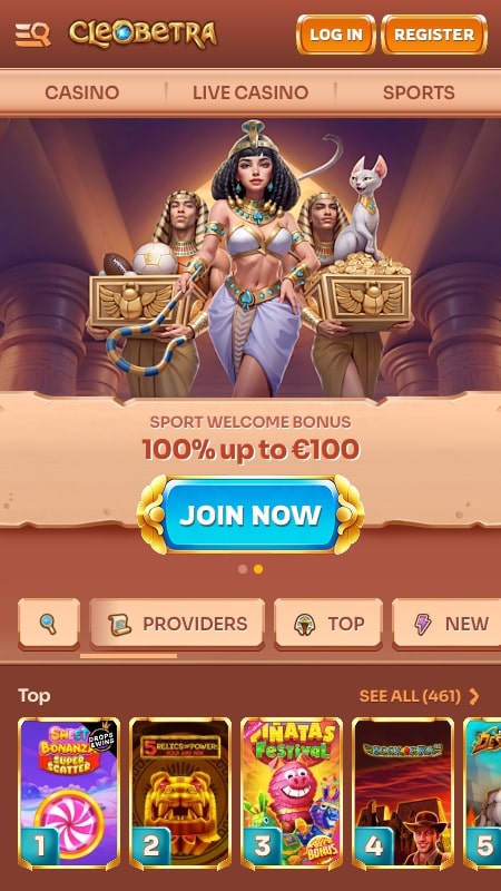 Cleobetra ir jauns 2025. gadÄ izveidots Ärzemju sporta totalizators, kas apvieno sporta likmes, kazino un pat kriptovalÅ«tu norÄÄ·inus vienotÄ platformÄ ar izteiktiem SenÄs ÄÄ£iptes vizuÄlajiem akcentiem. VietnÄ atrodami vairÄk nekÄ 30 sporta veidi, tostarp futbols, teniss, basketbols un e-sports, savukÄrt likmju veicÄjiem pieejami arÄ« āliveā notikumi un pastiprinÄtie (āboostedā) koeficienti.