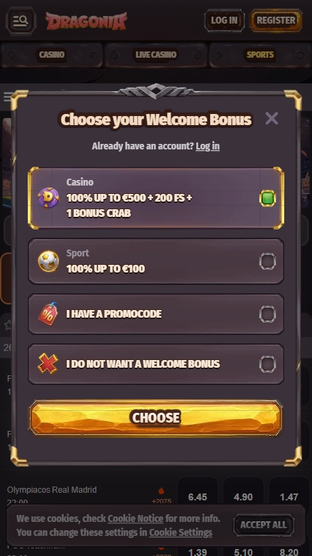 Dragonia piedÄvÄ vairÄkus bonusus, kas piemÄroti gan jaunajiem lietotÄjiem, gan aktÄ«vajiem likmju veicÄjiem. PiedÄvÄjumu klÄsts nav pÄrlieku plaÅ”s, taÄu tas ir labi strukturÄts un vÄrsts uz praktisku vÄrtÄ«bu ā lielÄkÄ daļa bonusu uzlabo koeficientus vai samazina risku sporta likmÄs. LabÄ ziÅa ā promo kodi nav nepiecieÅ”ami, un visi bonusi tiek aktivizÄti automÄtiski, ievÄrojot noteiktos nosacÄ«jumus.