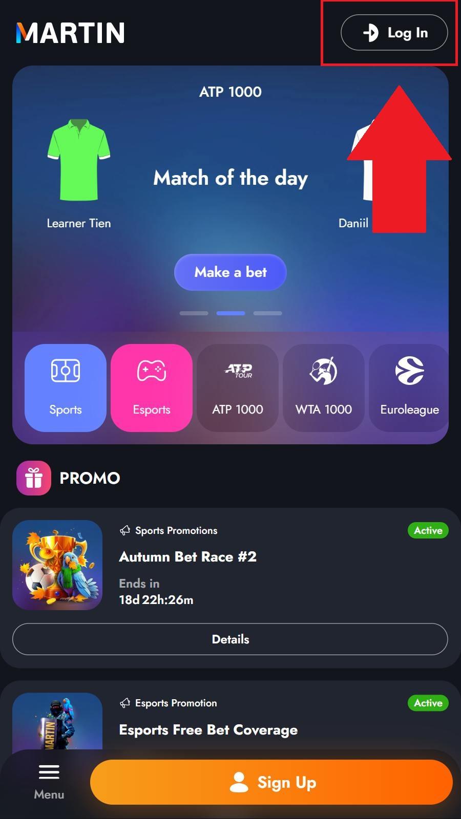 Lai sāktu veikt likmes Martin Casino totalizatorā, nepieciešams izveidot kontu. To var izdarīt vai nu soli pa solim ievadot nepieciešamos datus manuāli vai ar Google/Telegram konta palīdzību.