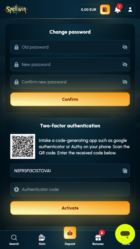 Papildu drošībai platformā pieejama arī divu faktoru autentifikācija (2FA), kas palīdz aizsargāt kontu pret neatļautu piekļuvi.